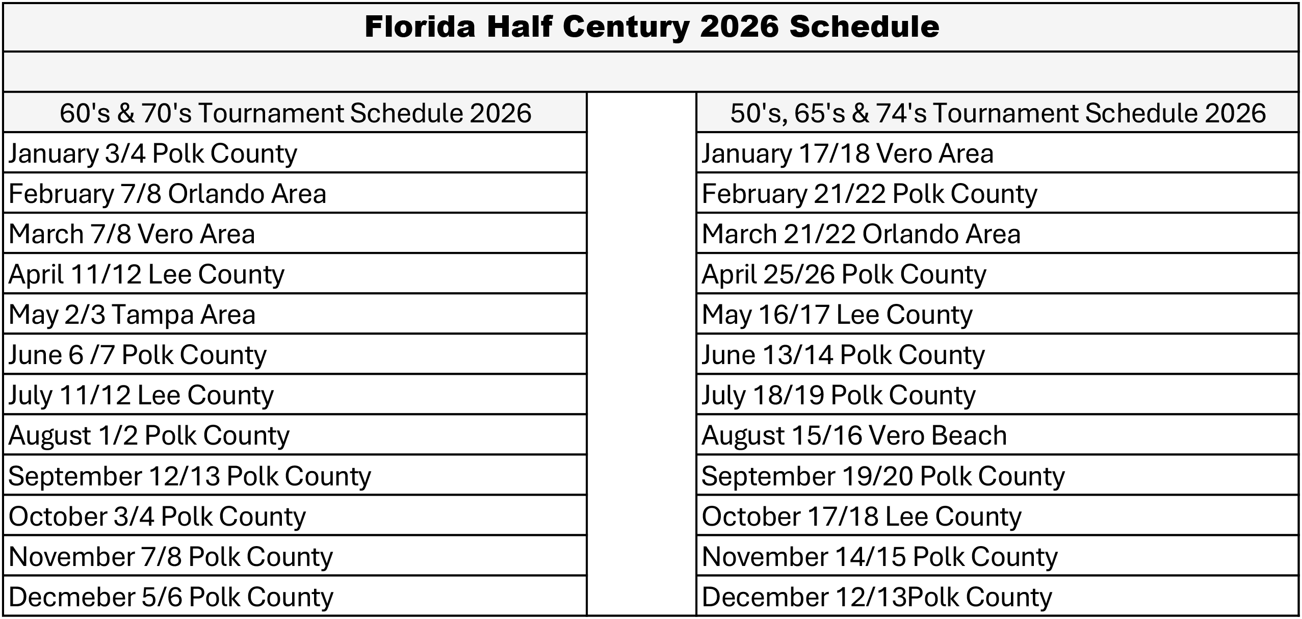 to download our 2026 50's, 60's & 65's, 70's and 74's Tournament Schedules
