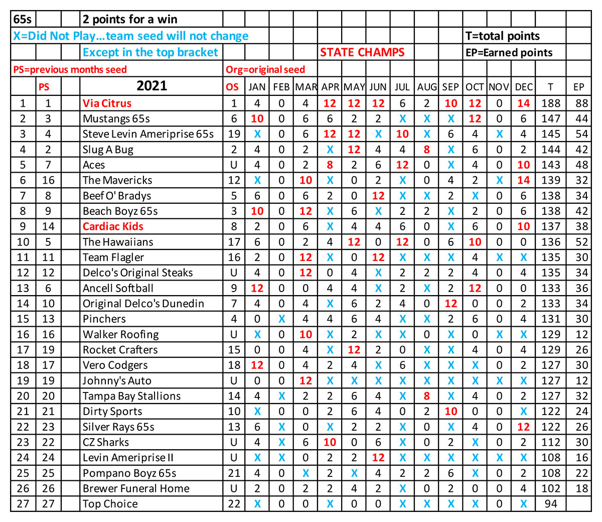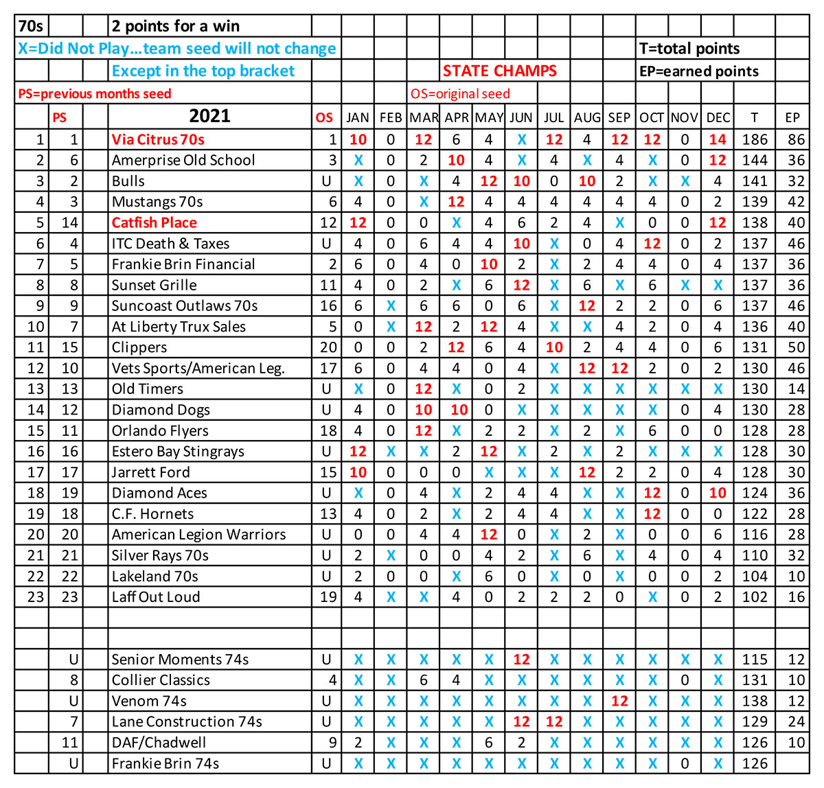 60+ Divisions 2021 Final Points