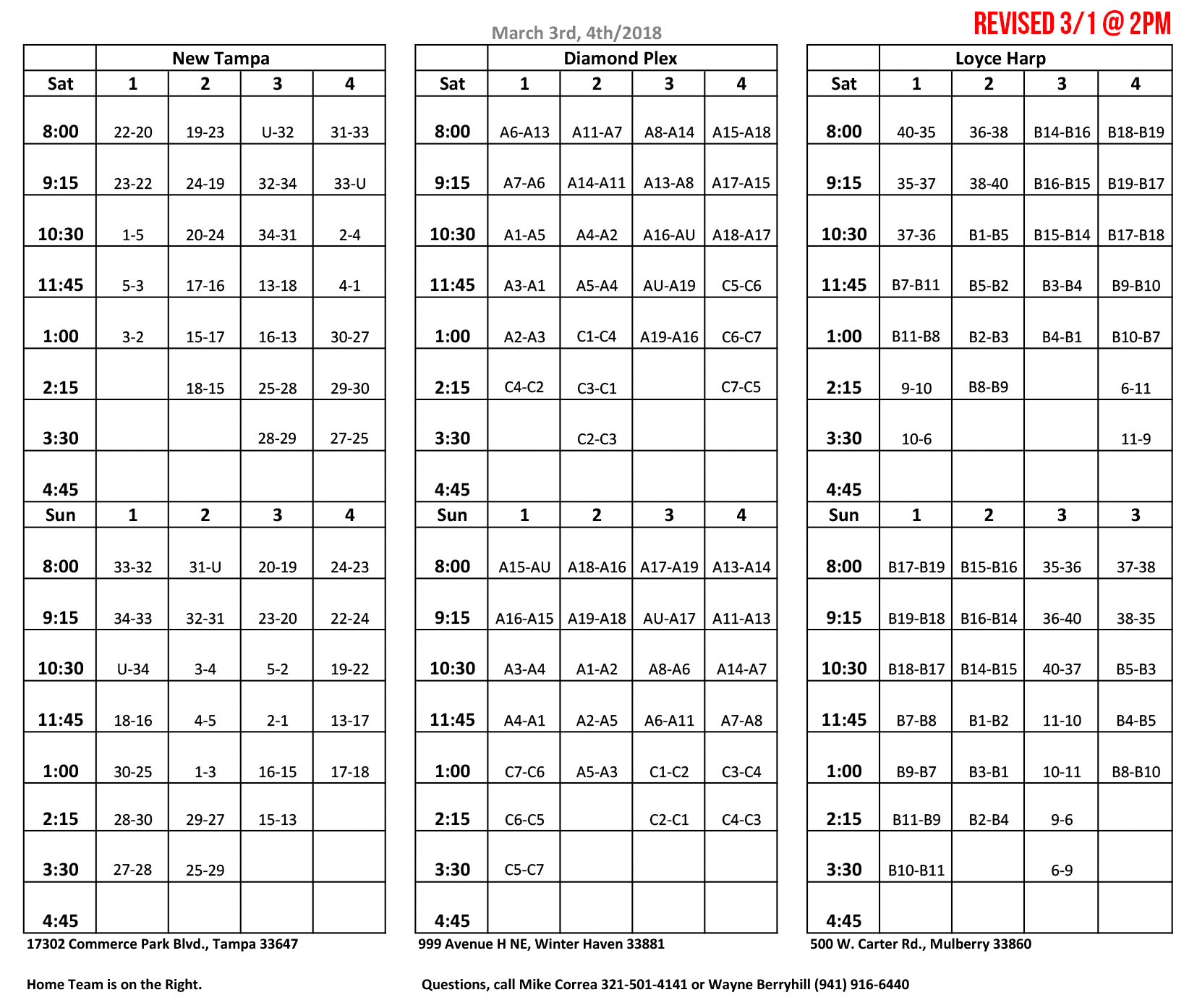60's Schedule - March 2018