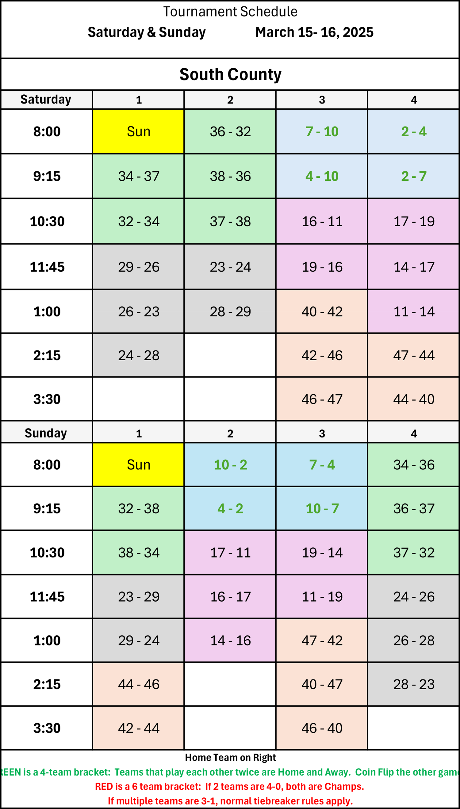 | 10:30 | 29 - 26 | 11 - 14 | 23 - 24 | 40 - 42 |