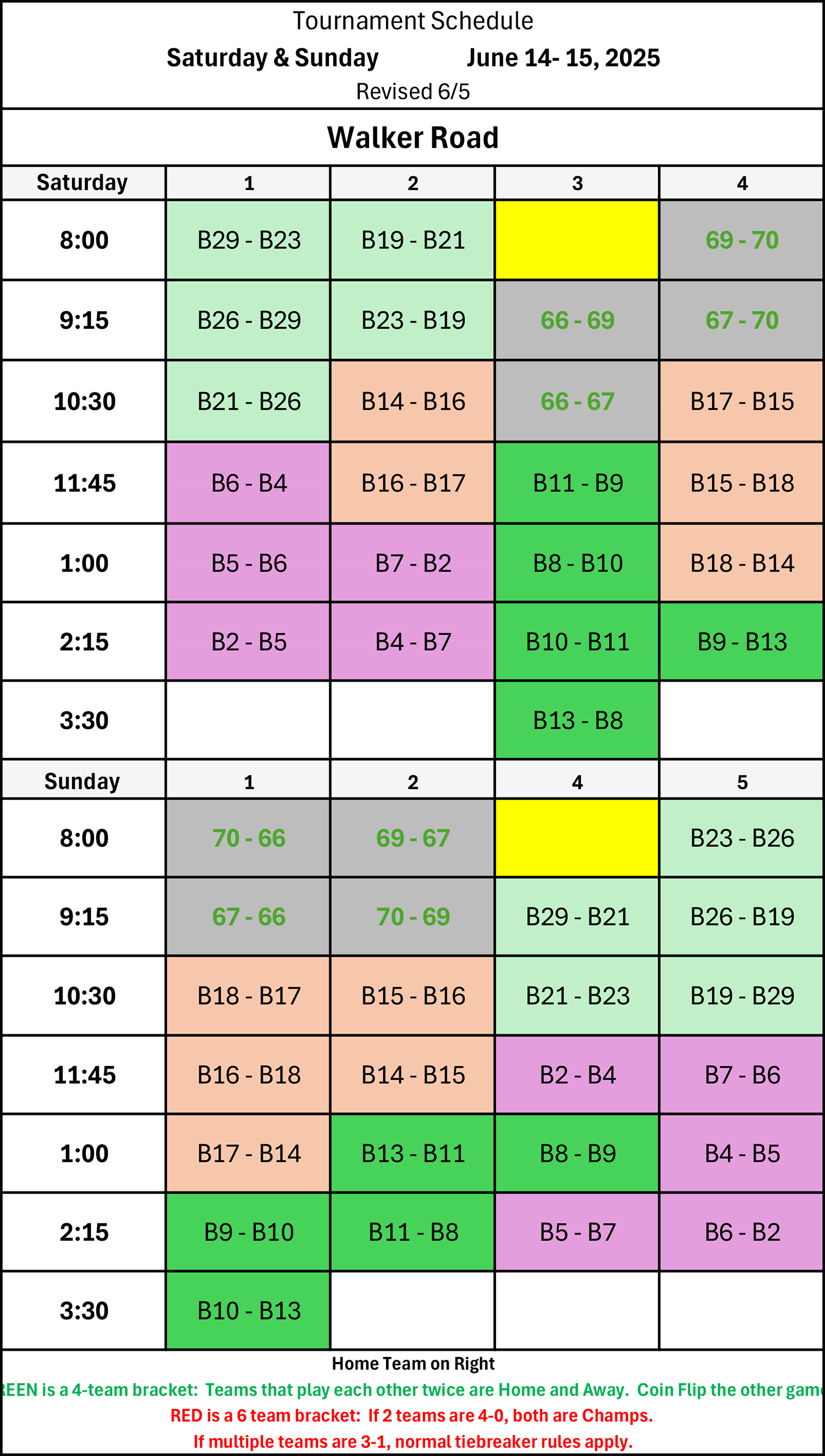 | 8:00 | B19 - B21 | B29 - B23 | Sun Field | B15 - B17 |