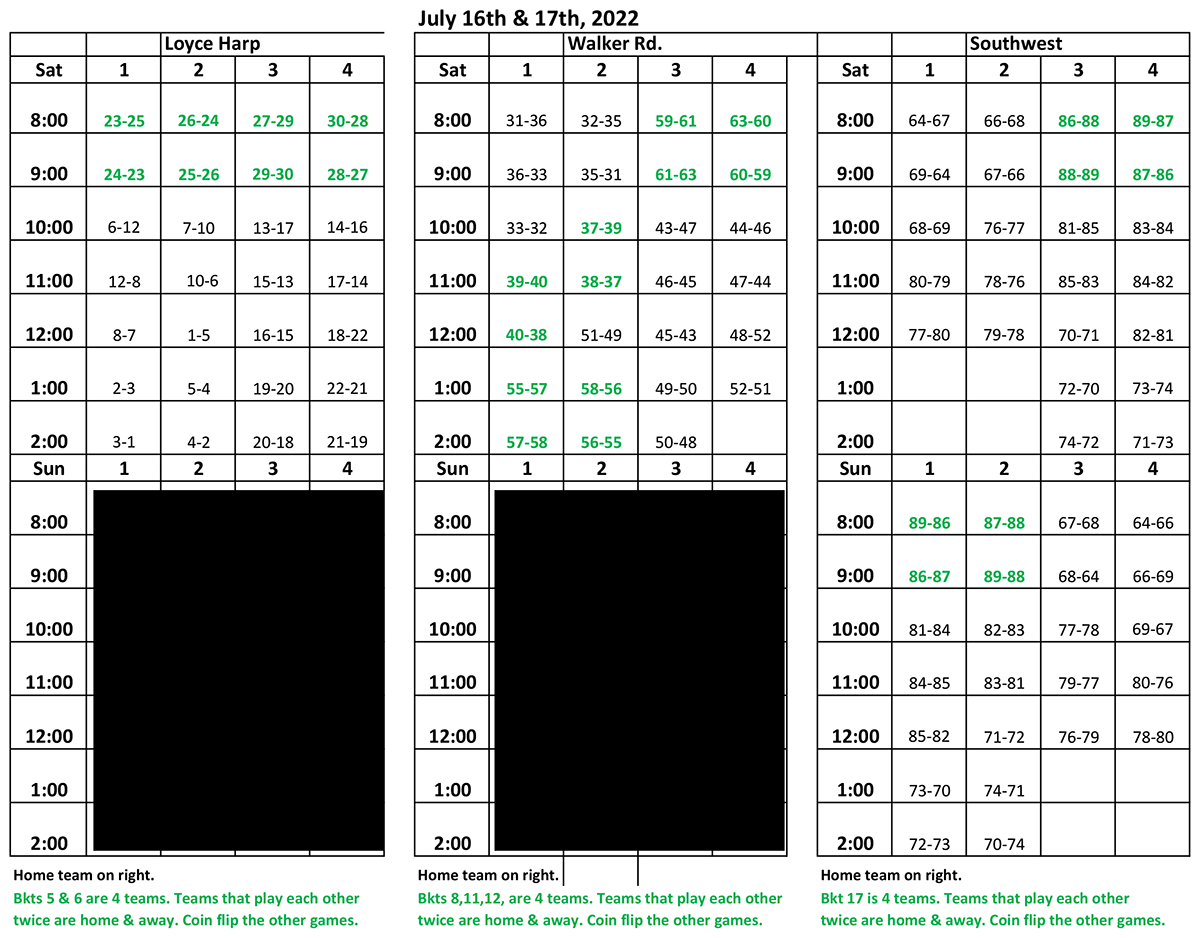 SUNDAY'S GAMES CANCELED AT LOYCE HARP & WALKER ROAD