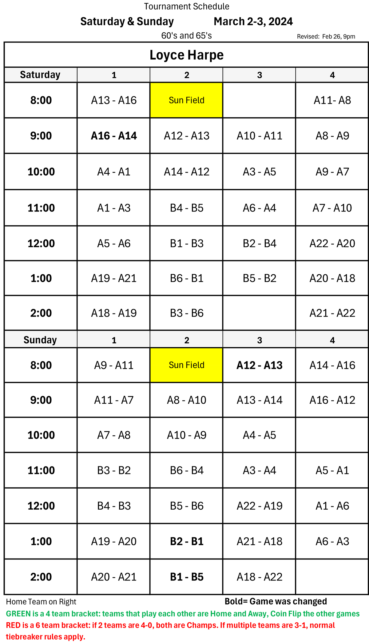 Field assignments determined by number of entrants!
