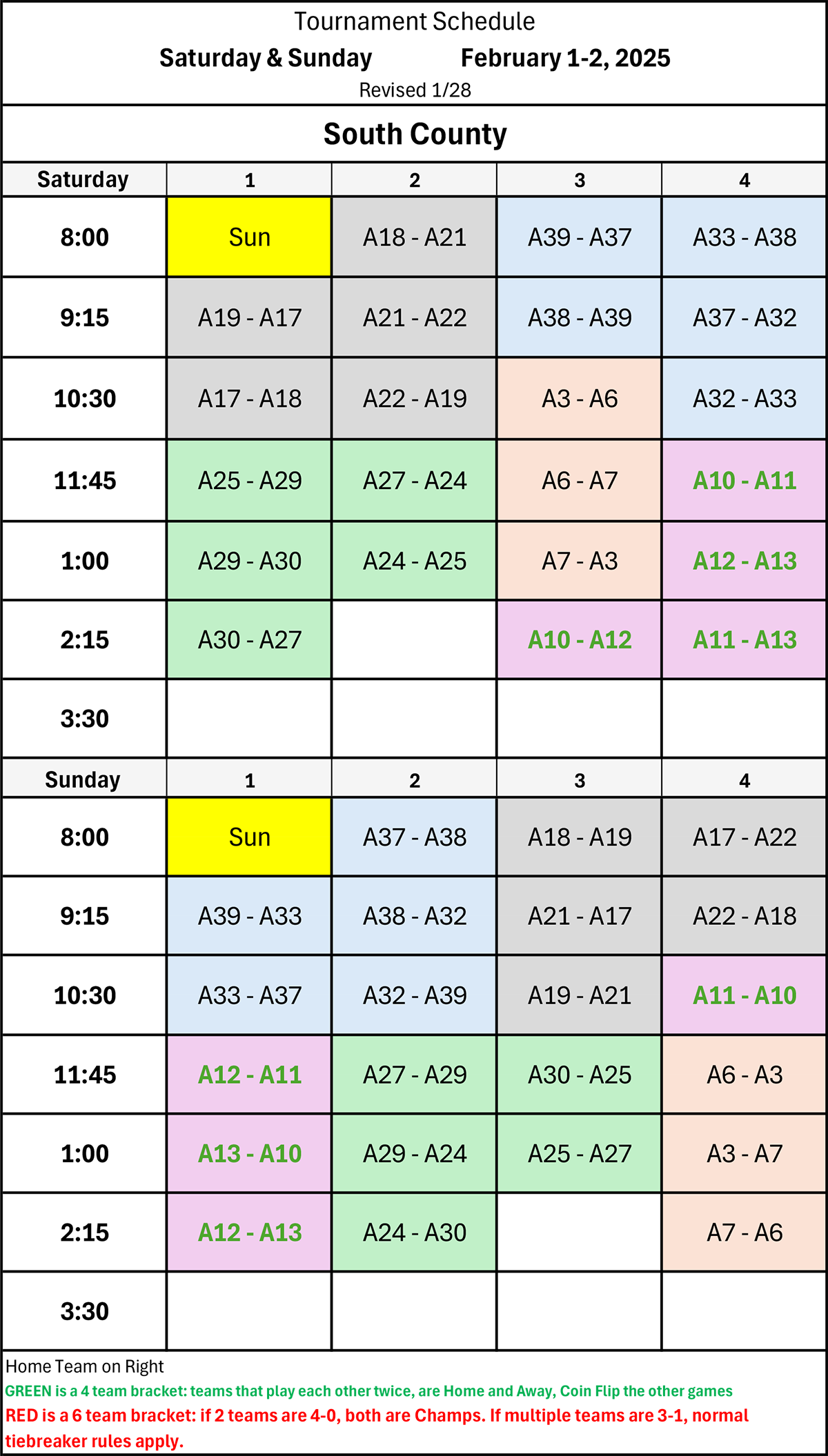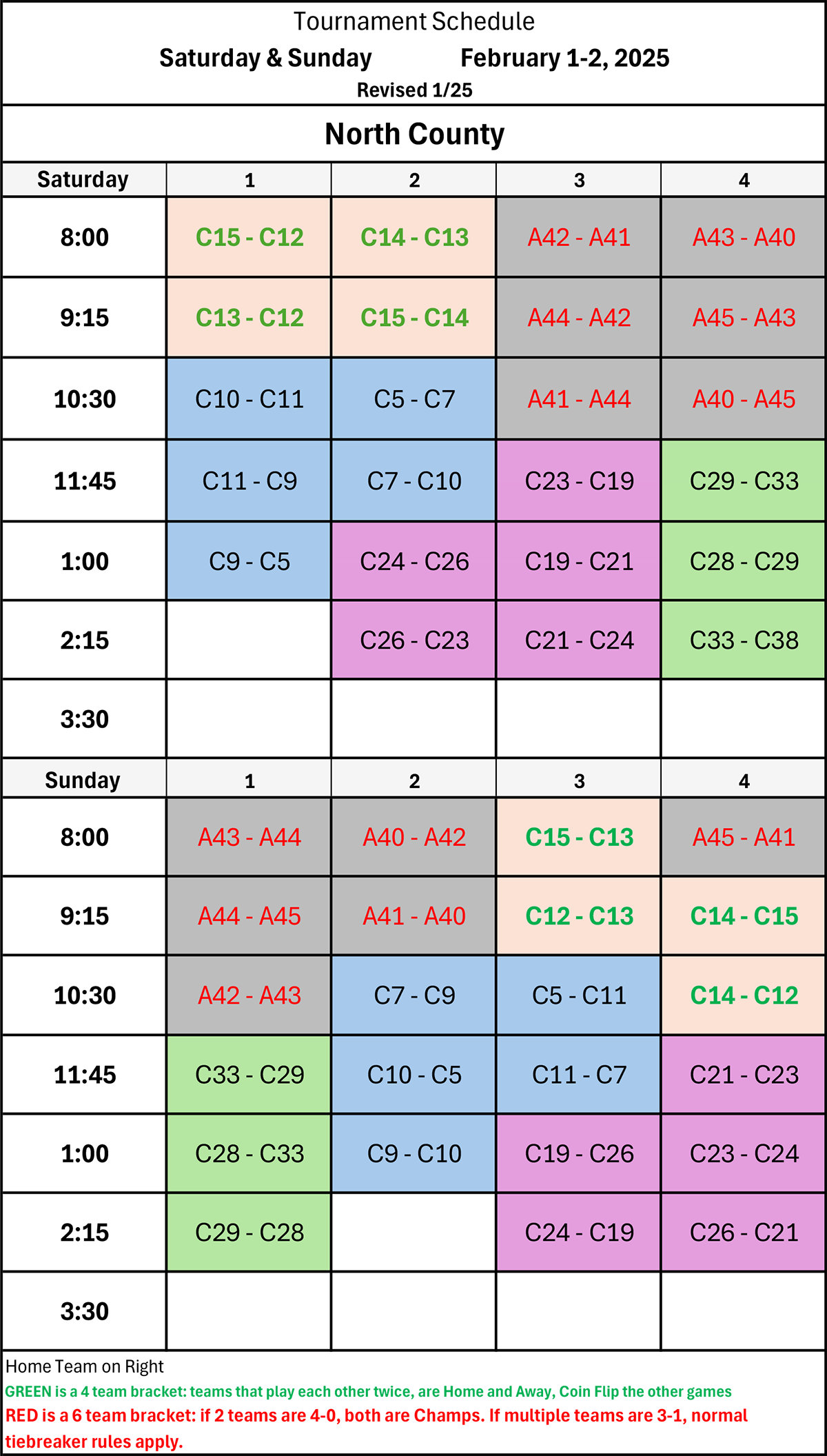 | 8:00 | A45 - A40 | A42 - A44 | C23 - C19 | Sun Field |